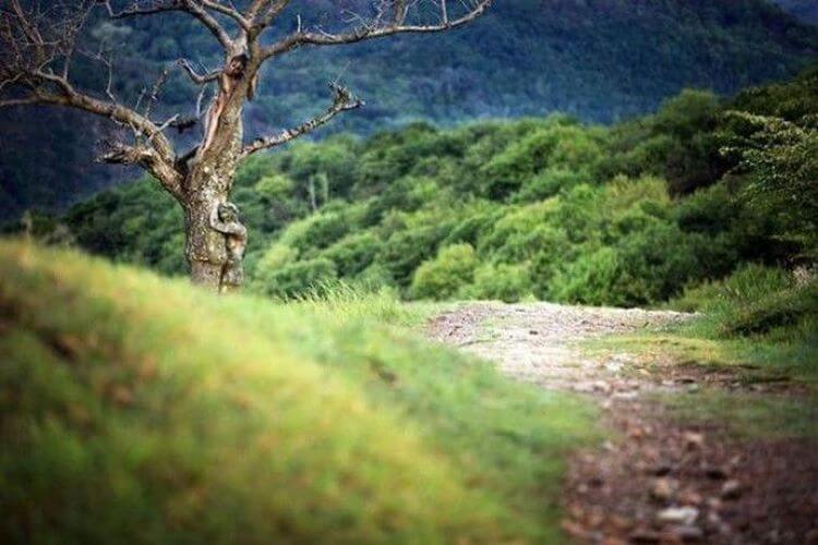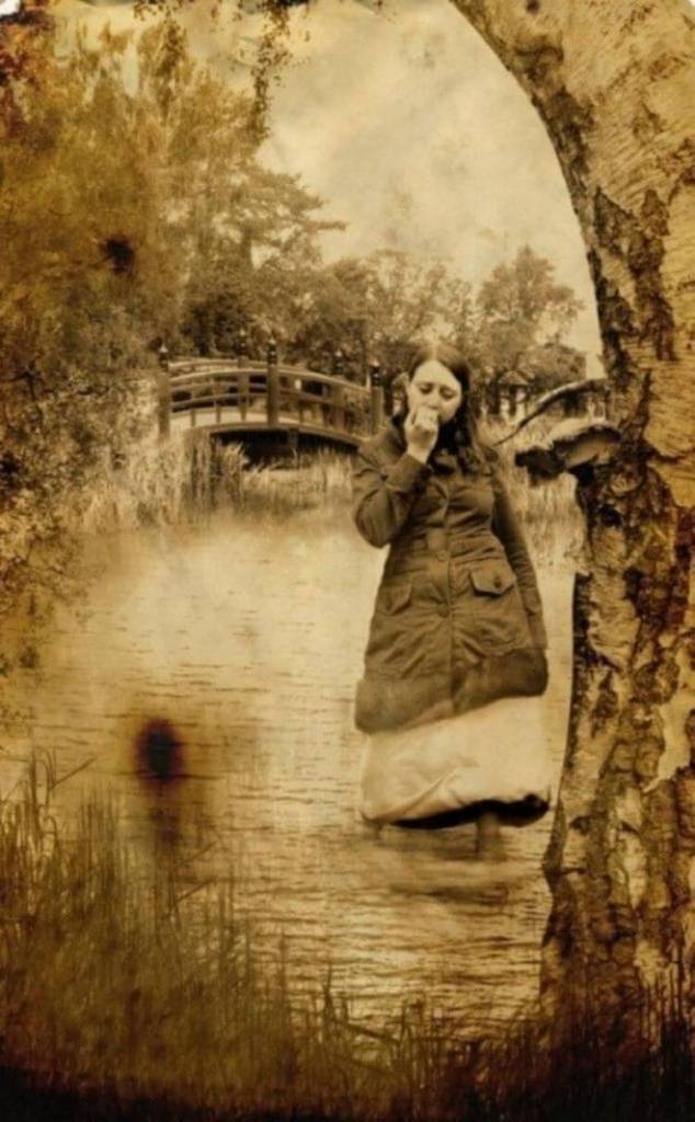 Підказка: для того, щоб побачити дівчину, варто зменшити масштаб фотографії. Так ви зможете помітити її, що поділ сукні – це вуста, міст – очі, пальто – ніс, а вигнутий стовбур дерева створює овальну форму обличчя.