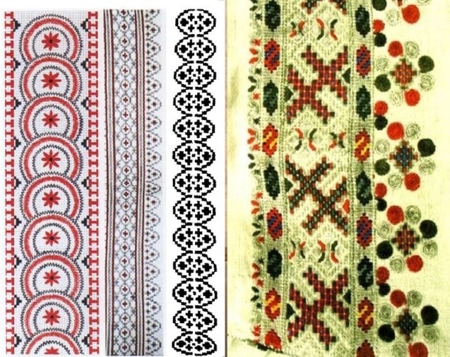 Вишивки – це своєрідні письмена, не дарма на Гуцульщині вишивальниці говорили: “Я таку сорочку випишу”. Сама ж сорочка, цитує Надія Понятишин книгу «Код української вишивки» Марії Чумарної, «складалася із шести чотирикутників різної величини… Ці чотирикутники з’єднувалися між собою за допомогою хрестиків, вишитих, як правило, чорними нитками: аби жодна стороння енергія не могла крізь шви проникнути до людського тіла, бо хрест своєю енергією “розтинає”, знищує негативну енергію, а чорний колір її поглинає. Низом, на грудях і на рукавах вишивалися священні коди сили”. Головними вважаються дванадцять.