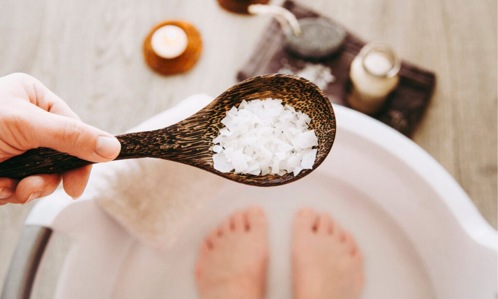 Налийте в таз гарячої води, додайте 6 крапель евкаліптової олії і стільки ж розмаринового. Тримайте ноги в такій воді 5-10 хвилин. Дуже корисні й інші суміші, наприклад хвойний екстракт (15 мг) з морською сіллю (2 ст. л.).