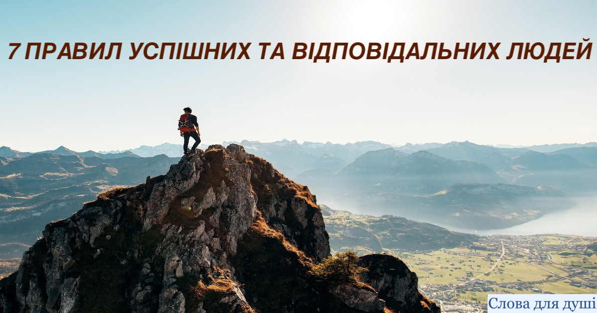 Успіх – поняття відносне. Хтось написав добру книгу, а хтось – зробив сотню успішних операцій. Побудувати мільйонний бізнес, виграти світовий чемпіонат або ж виховати доброго сина чи доньку – може тільки відповідальна людина. Але яка це людина? Важко описати її, то треба мабуть цілу статтю чи навіть книгу, то ж ми вихопили 7 головних, на нашу думку, ознак, як говорять про людину, як про успішну та відповідальну. Бо успіх та відповідальність – то дві сторони однієї медалі.