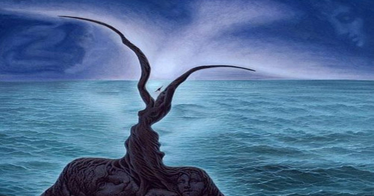 На перший погляд, картина має вигляд звичайного пейзажу. І лише через деякий час можна побачити, що на ній приховано насправді. Тут не лише красивий морський ландшафт за деревом на передньому плані. Можна побачити ще й людські обличчя, приховані в різних частинах.