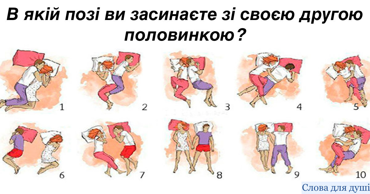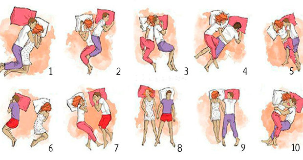 Цей тест на сумісність з пози уві сні, в якій сплять партнери, дуже точний. Поза уві сні відображає відносини і почуття, що є між подружжям.